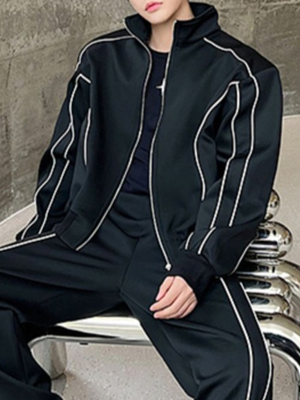Conjunto de chándal de manga larga con empalme de línea de color en contraste para hombre