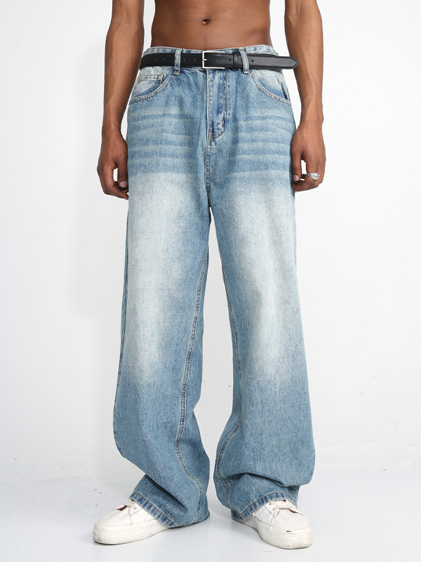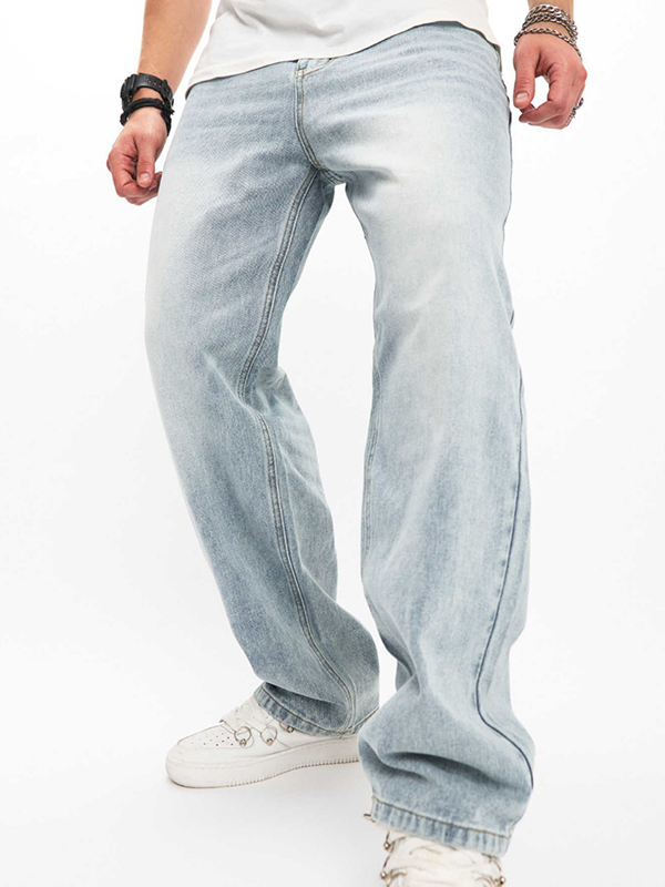 Vaqueros holgados con ribete crudo y lavado vintage para hombre