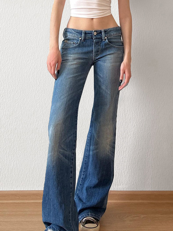 Jeans acampanados versátiles básicos de adelgazamiento de tiro bajo