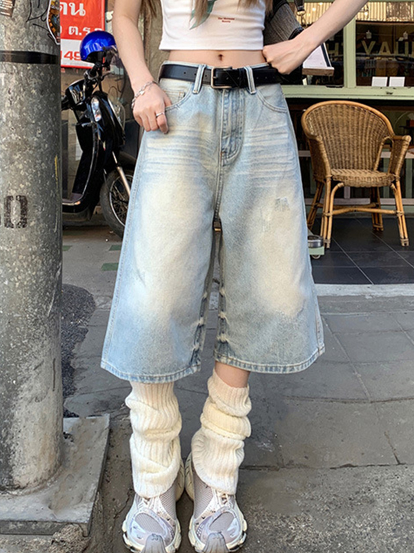 Pantalones cortos vaqueros lavados estilo vintage americano