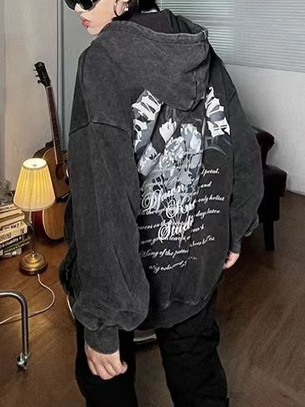 Sudadera con capucha extragrande con estampado de letras desgastadas y lavadas para hombre