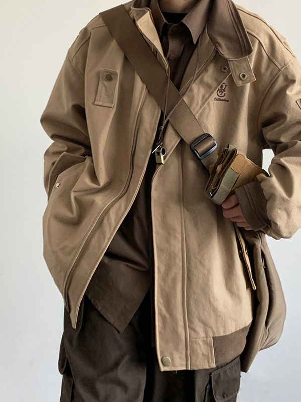 Chaqueta con empalme de cuello con solapa y bordado vintage para hombre