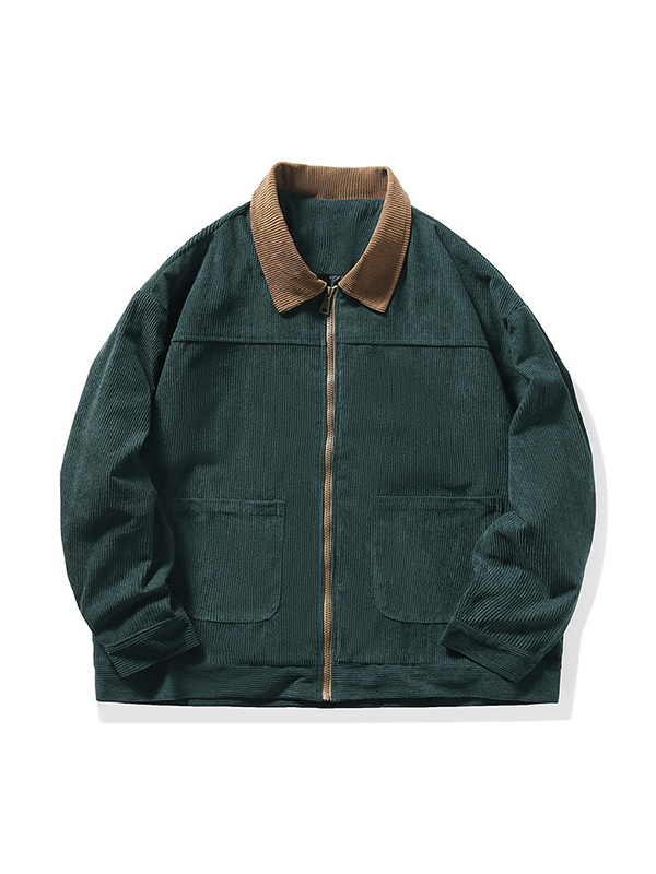 Chaqueta vintage de pana con cuello de solapa y cremallera para hombre