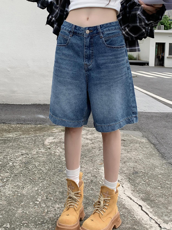 Shorts vaqueros holgados lavados estilo americano