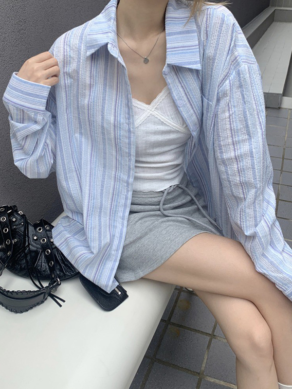 Camisas de manga larga con estampado de rayas de calle