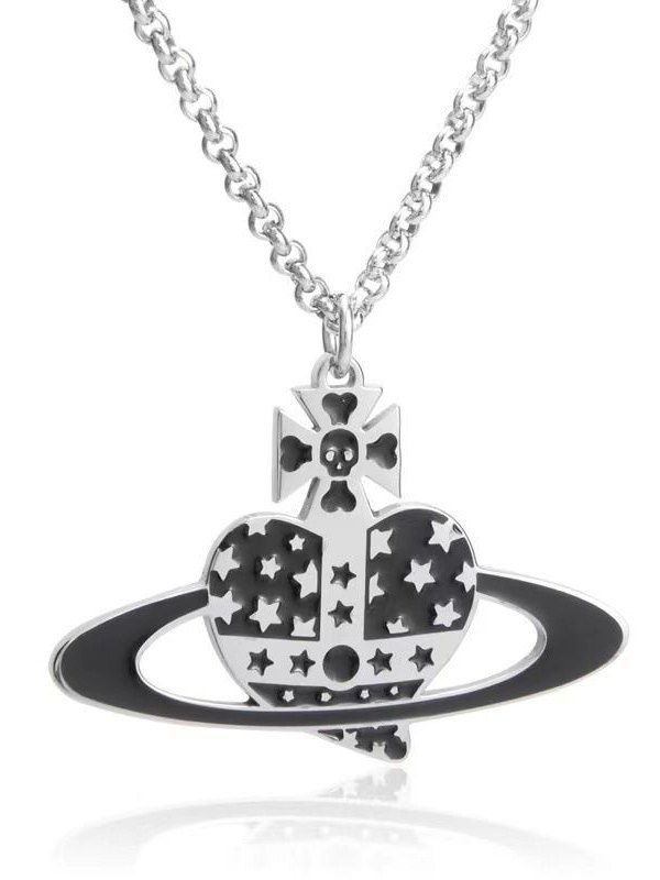Collar con dije de planeta y corazón de diamantes de imitación