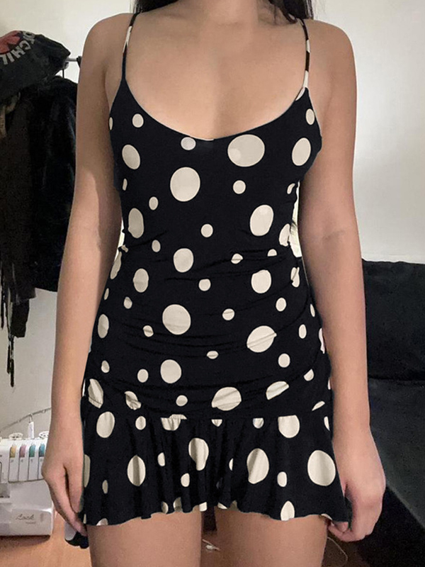 Minivestido irregular con volantes y lunares