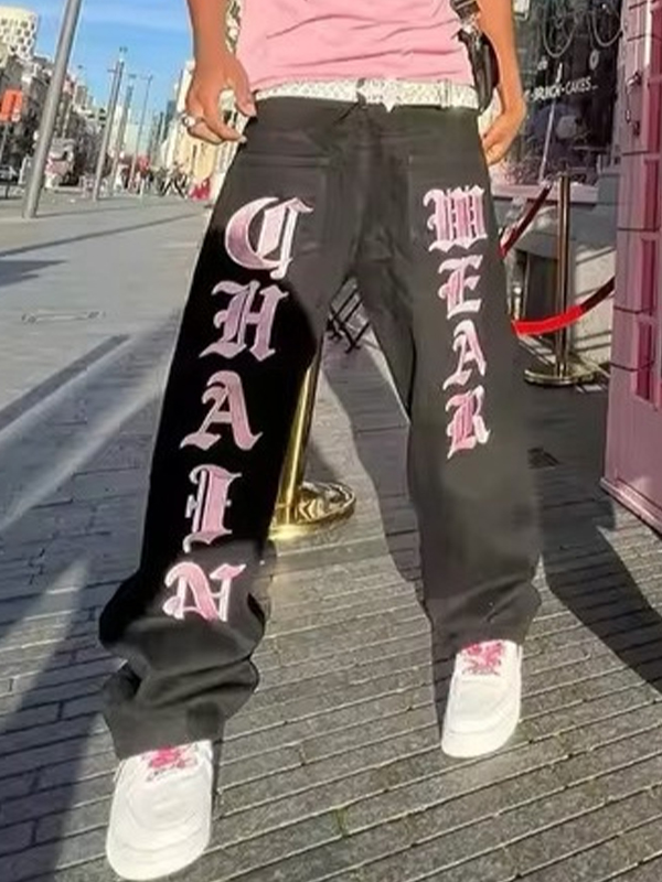 Vaqueros holgados con estampado gráfico de letras de estilo hip hop