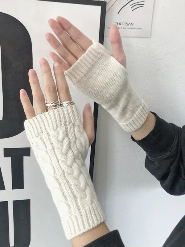 Guantes calentadores de manos de tejido trenzado con orificio para el pulgar
