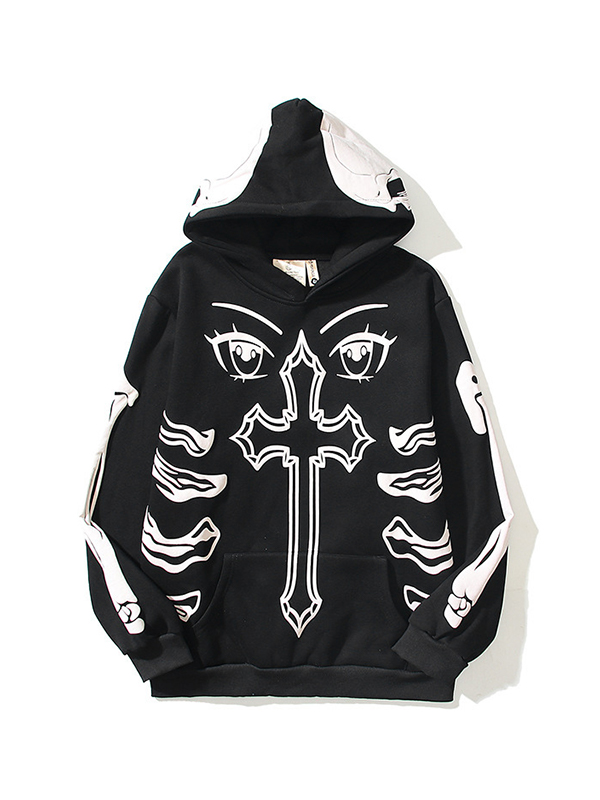 Sudadera con capucha de manga larga y gran tamaño con estampado de cruces para hombre