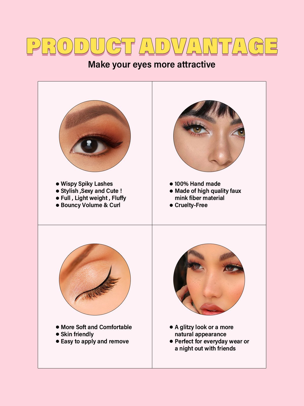 Detalles: Este producto incluye un aplicador de pestañas, se puede reutilizar y sin pegamentos para pestañas.