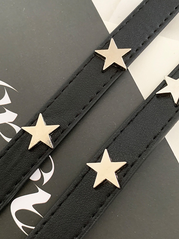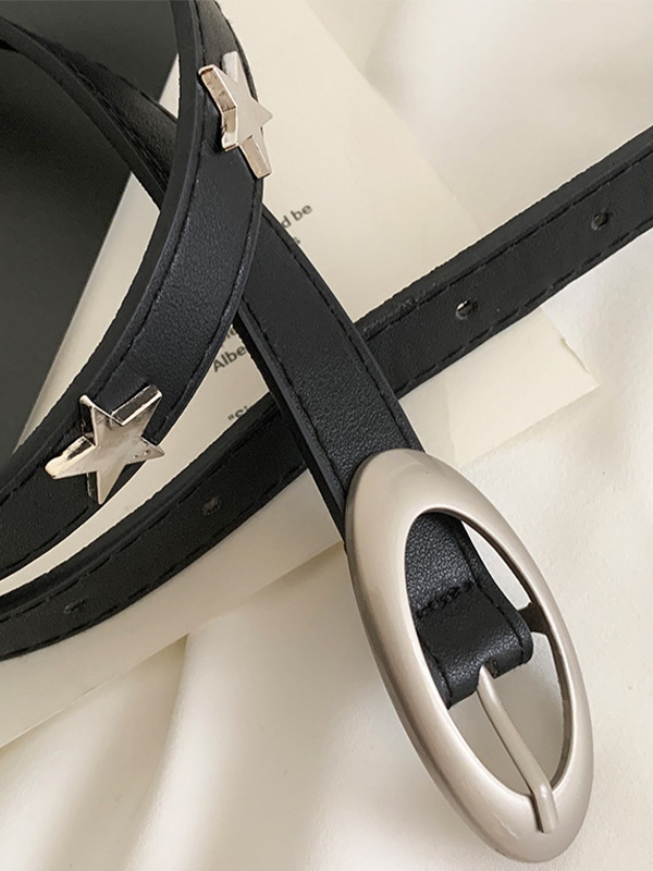 Ligero y cómodo, el cinturón negro con hebilla fina adornada con estrellas es muy práctico. Ideal para cualquier ocasión casual, ¡una gran compra a este precio!