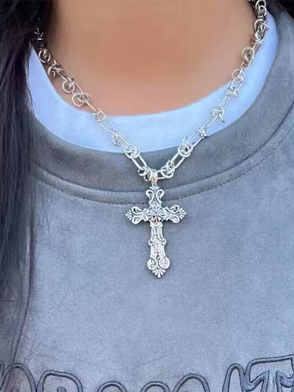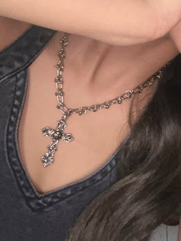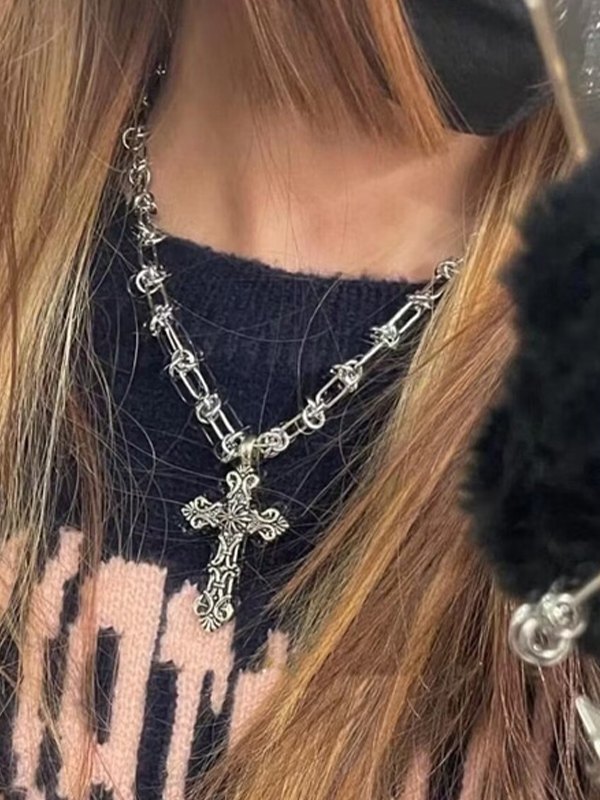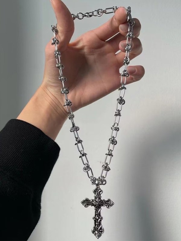 Collar de cadena de plata con cruz punk