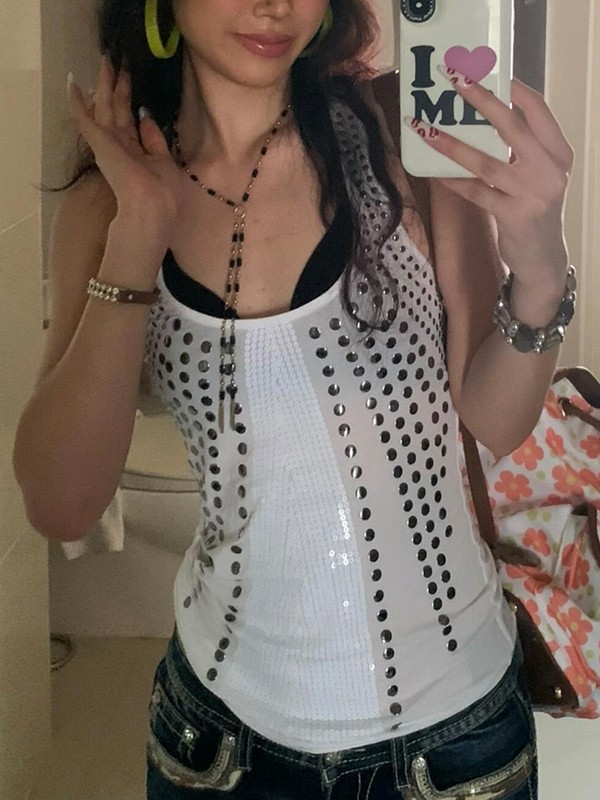 Top de tirantes finos con lentejuelas de diseñador