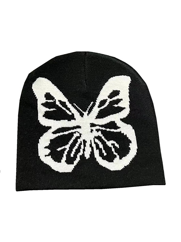 Gorro Beanie de jacquard con mariposas en contraste de color