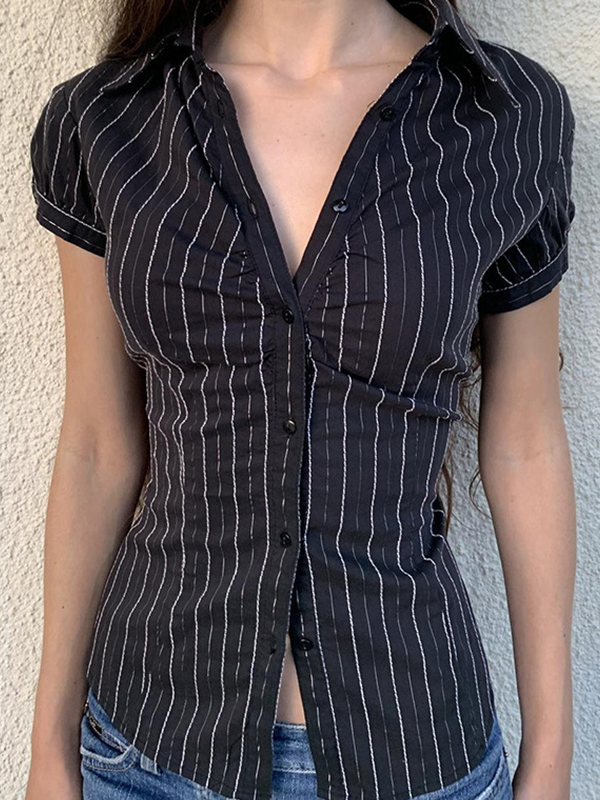 Camisas vintage de manga corta a rayas