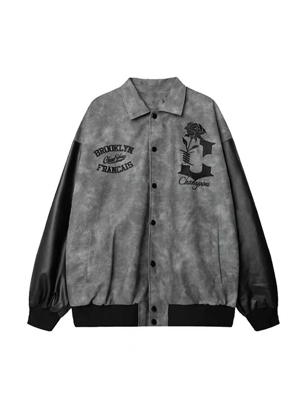 Chaqueta universitaria de cuero sintético bordado para hombre
