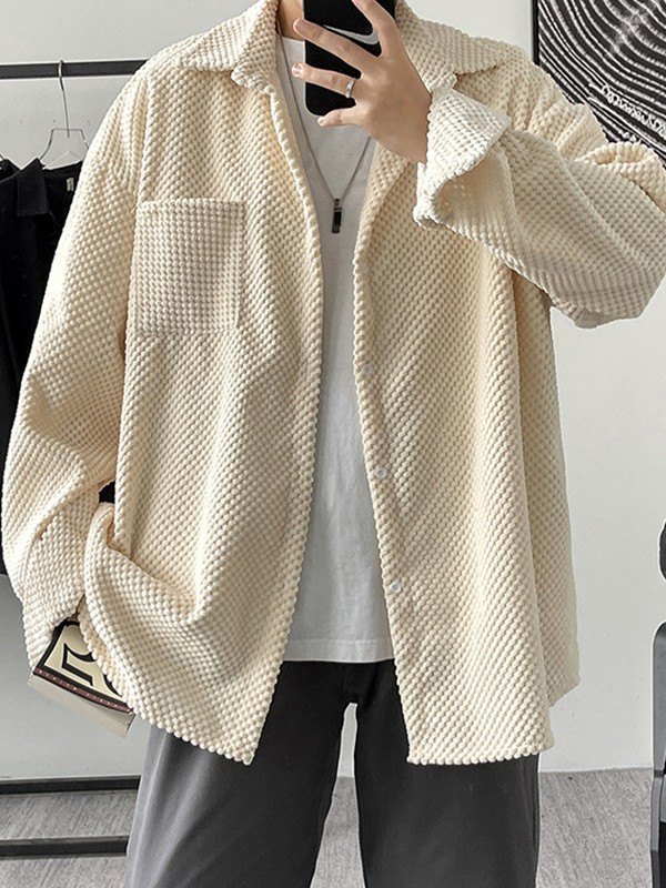 Chaqueta vintage de pana con cuello de solapa y cremallera para hombre