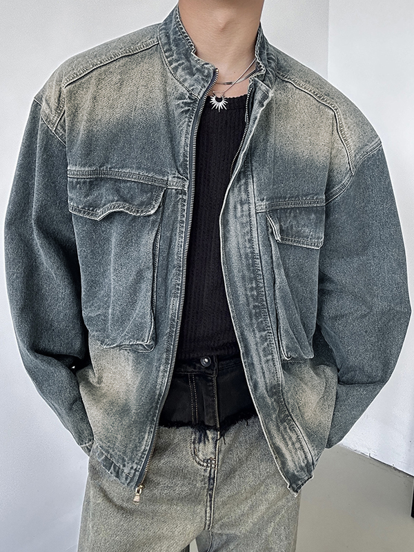 Chaqueta vintage con diseño de varias cremalleras para hombre