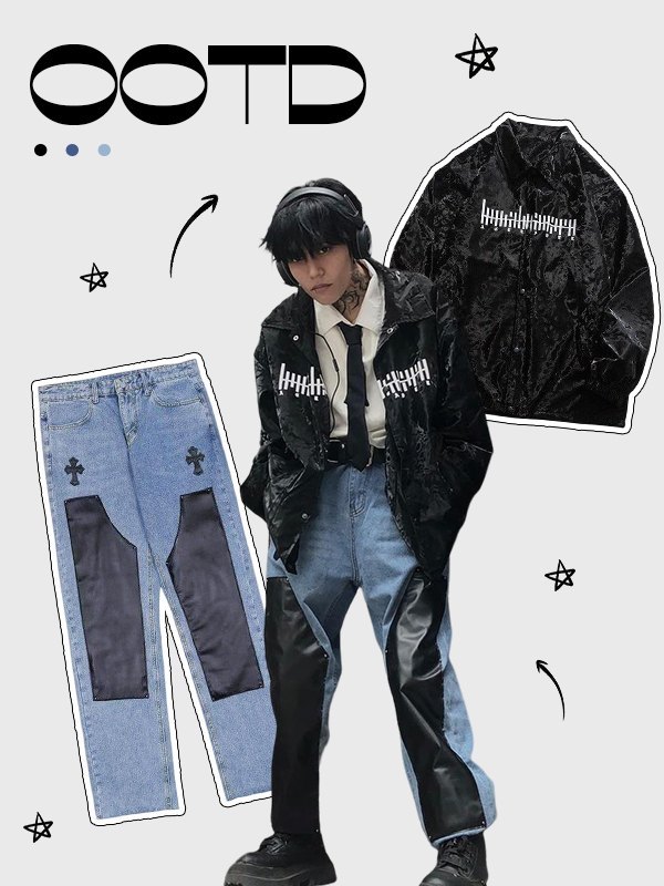 Chaqueta de empalme de cuero con bordado Tie Dye para hombre