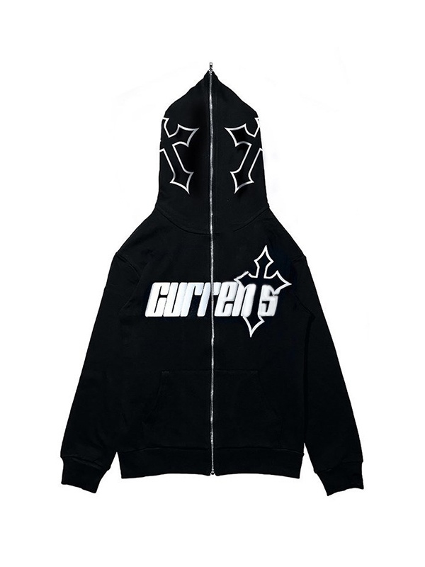 Sudadera con capucha extragrande con cremallera y estampado abstracto callejero