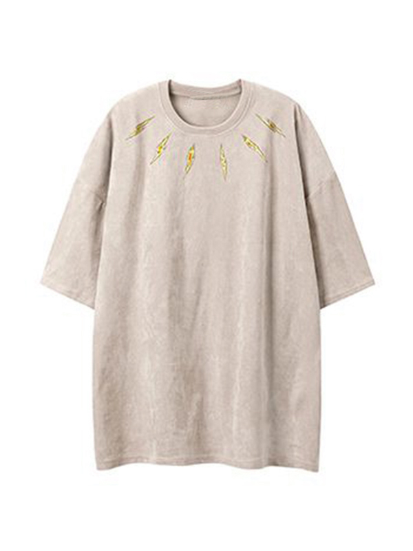 Camiseta de manga corta con estampado de rayos de ante vintage para hombre