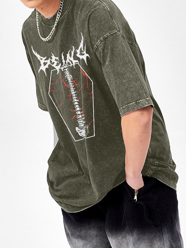 Camiseta de manga corta con estampado de calavera desgastada y lavada para hombre