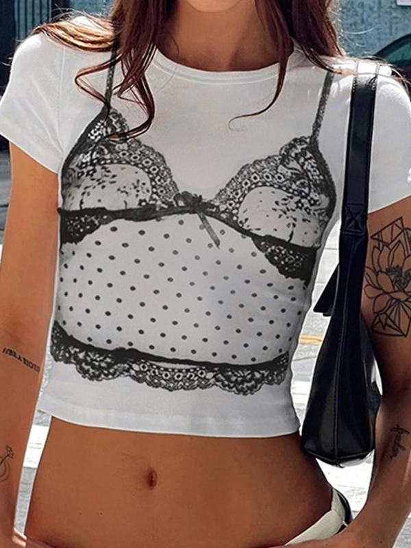 Camiseta de manga corta con encaje y tirantes finos