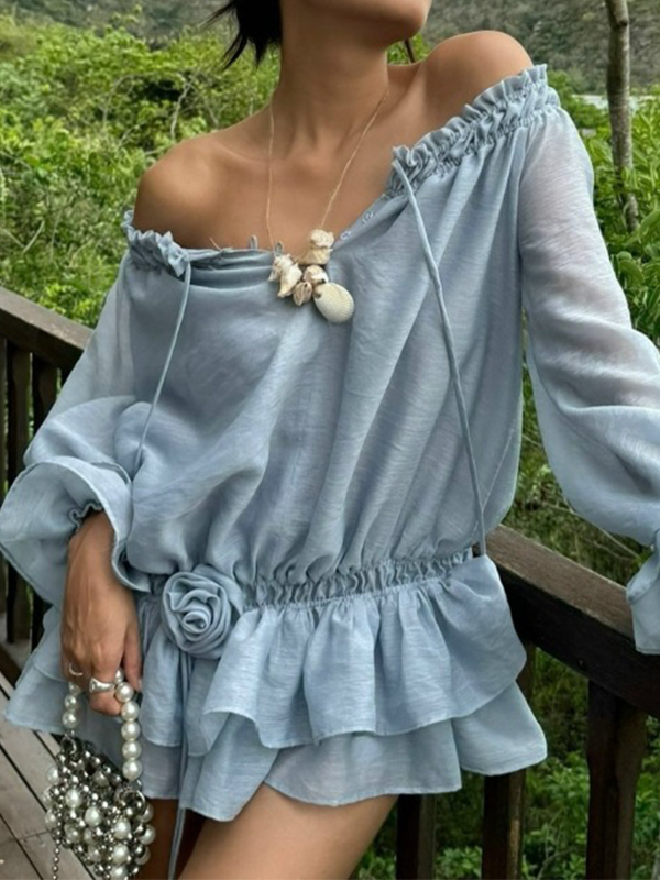 Minivestidos de gasa con volantes y escote barco y cintura ajustada
