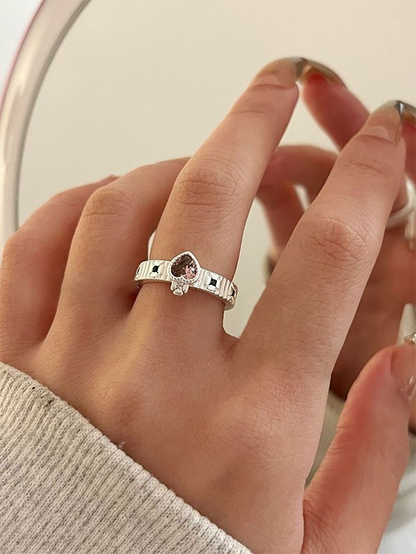 Anillo de brazalete con dije de corazón de diamantes de imitación