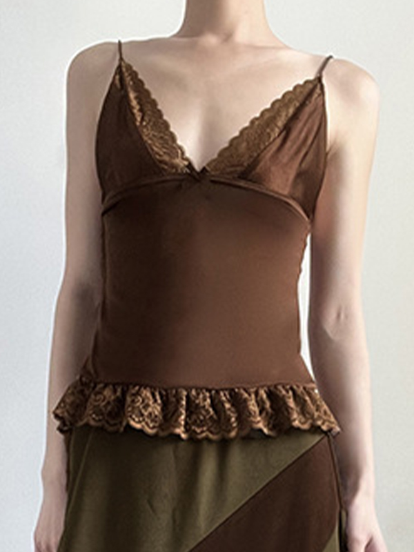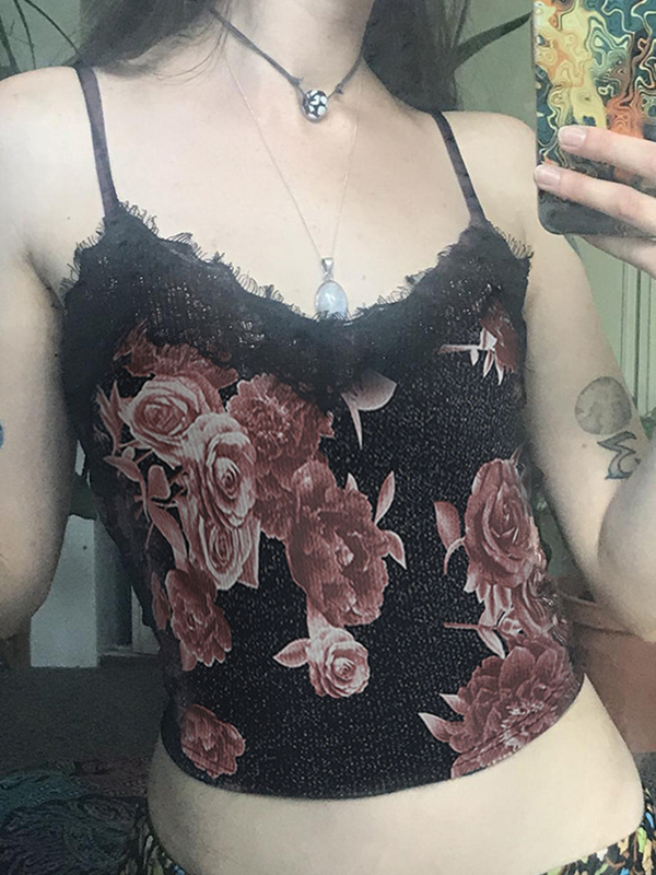 Top de tirantes con estampado de serpiente y retazos de encaje