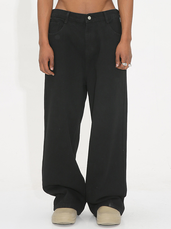 Vaqueros holgados con cintura elástica y lavado negro para hombre
