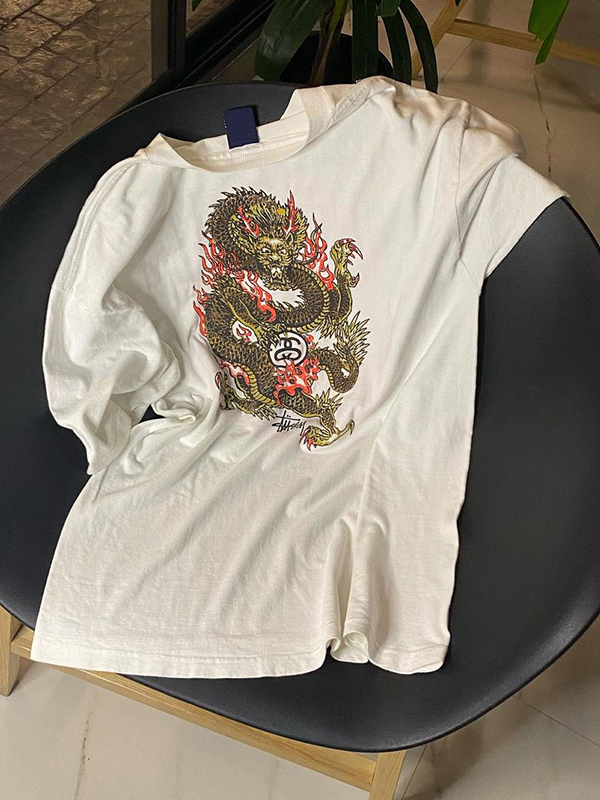 Camiseta de manga corta con estampado de dragón para hombre
