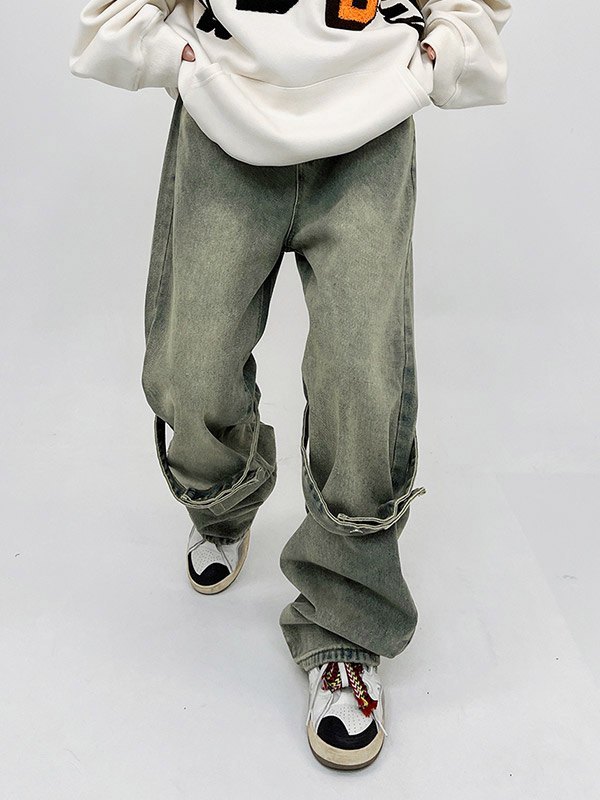 Pantalones de pierna ancha con bolsillo lateral con cremallera para hombre
