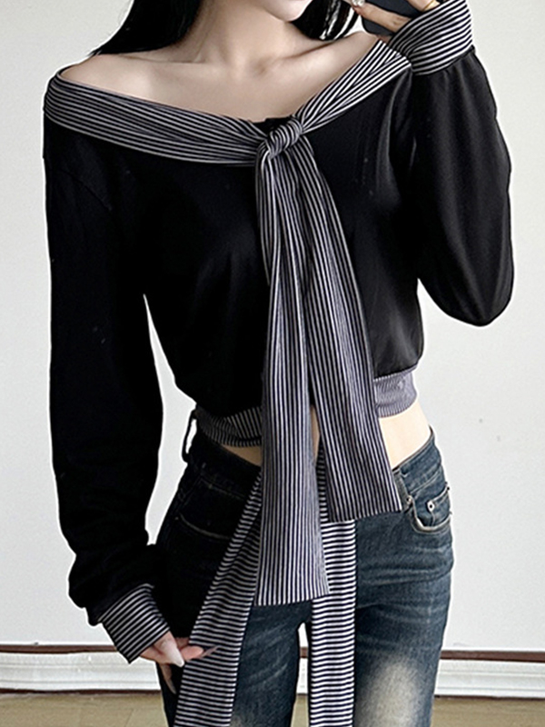 Cuello en V cruzado, manga larga ajustada y anudada