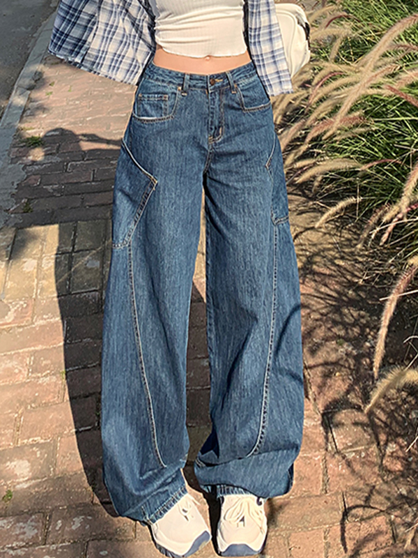 Vaqueros acampanados hasta el suelo, de cintura alta y ligeramente levantados