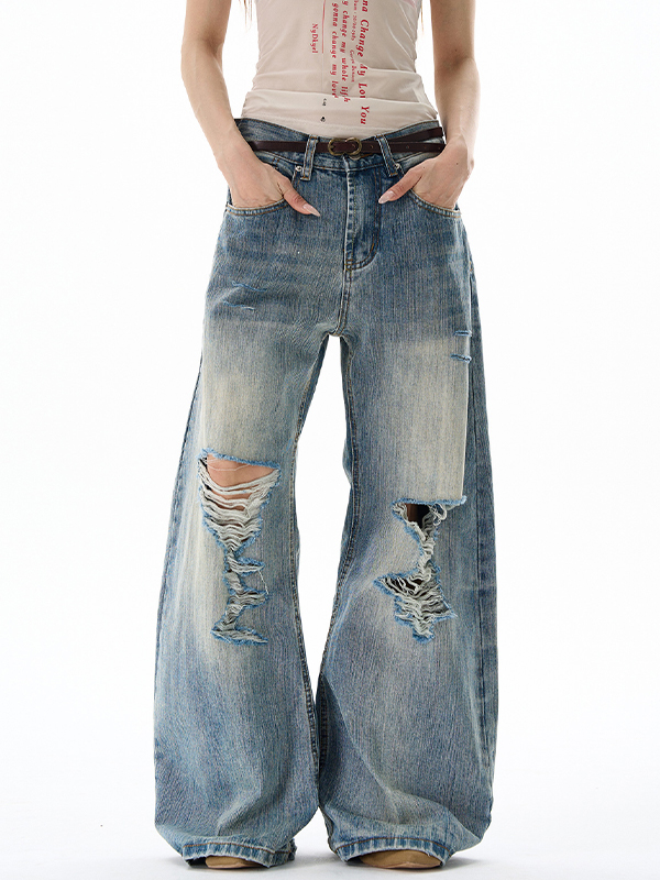 Vaqueros boyfriend con agujeros estilo retro americano