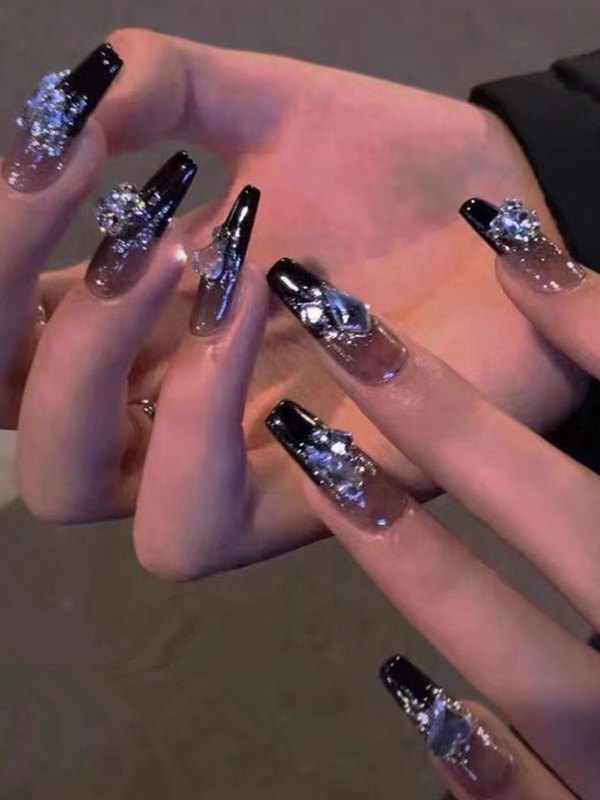 24 piezas de diamantes de imitación Cosmos Star Press On Nails