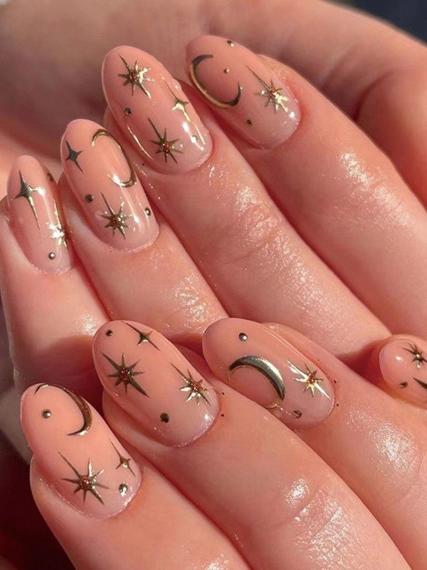 24 piezas de patrón de estrella de luna creciente prensa en las uñas