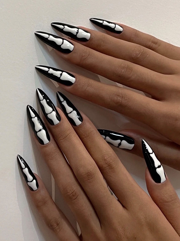24 piezas Prensa en uñas con patrón de nudillos de Halloween