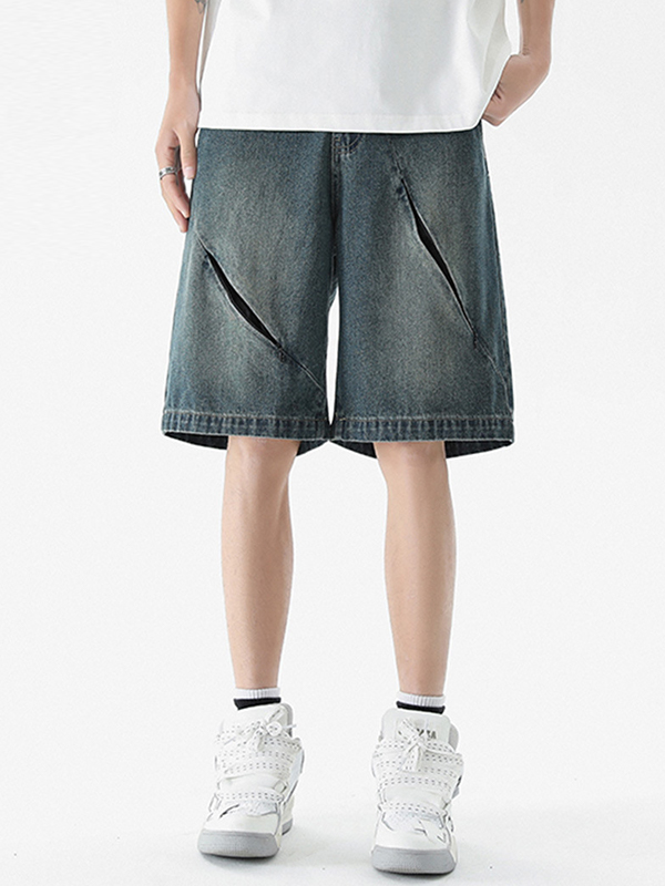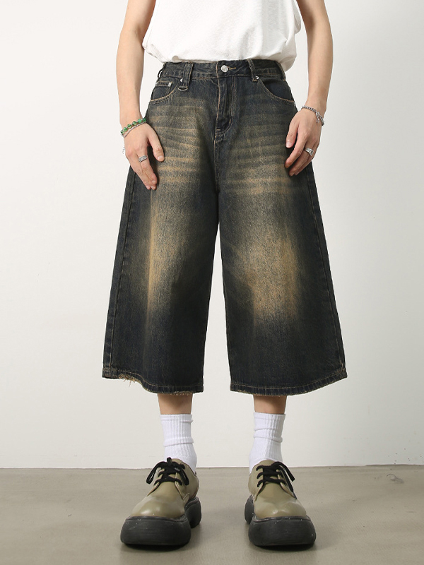 Pantalones cortos sueltos de mezclilla lavada vintage para hombre