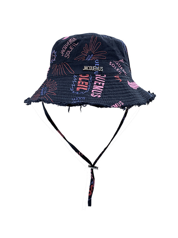 Sombrero de pescador a prueba de sol con ribete crudo y estampado colorido lavado