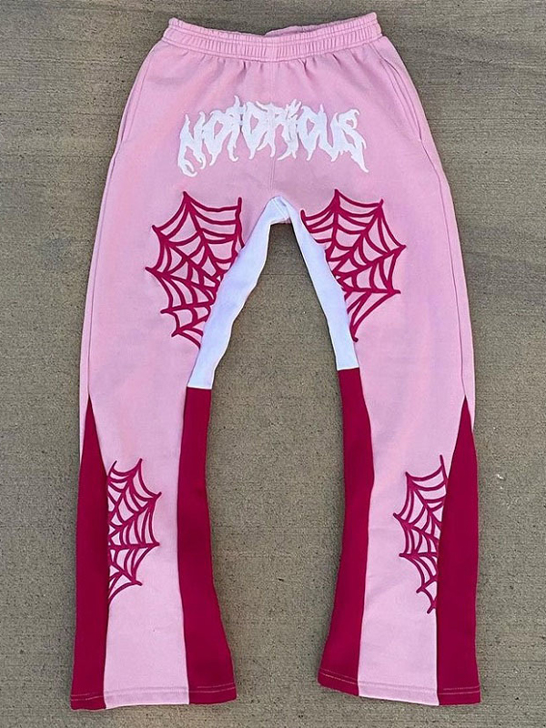 Pantalones deportivos con estampado de espuma y letras de telaraña