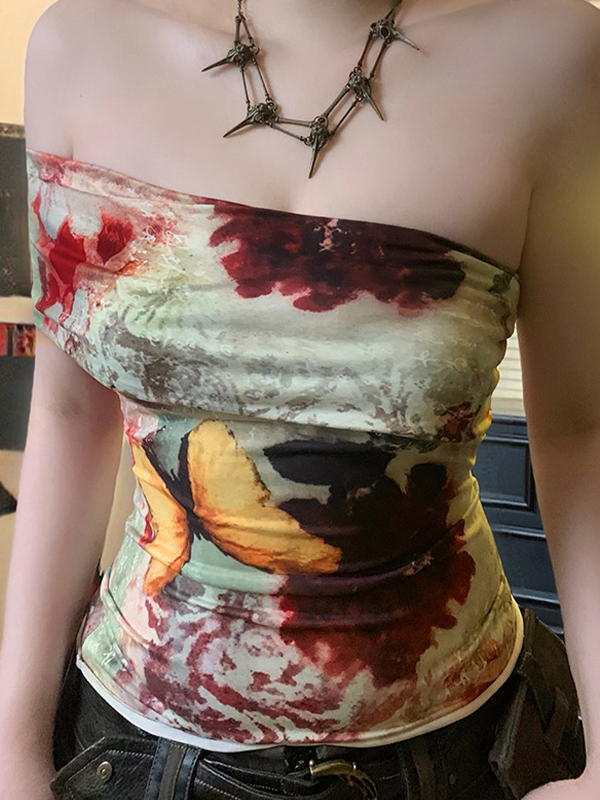 Camiseta sin mangas con hombros descubiertos y estampado retro