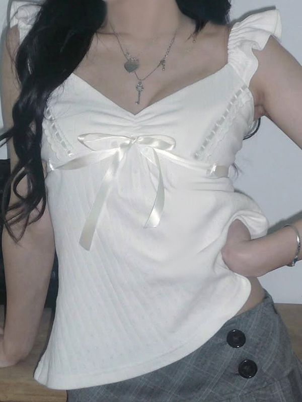 Top de encaje con lazo en el cuello