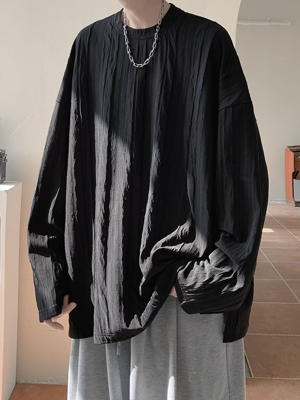 Camiseta de manga larga con cuello redondo y textura sólida para hombre