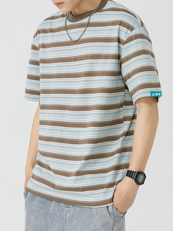 Camiseta extragrande de manga corta con estampado de rayas para hombre