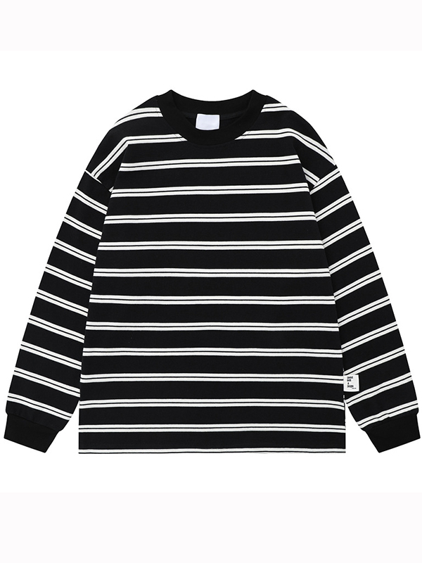 Camiseta de manga larga holgada con estampado de rayas de calle para hombre