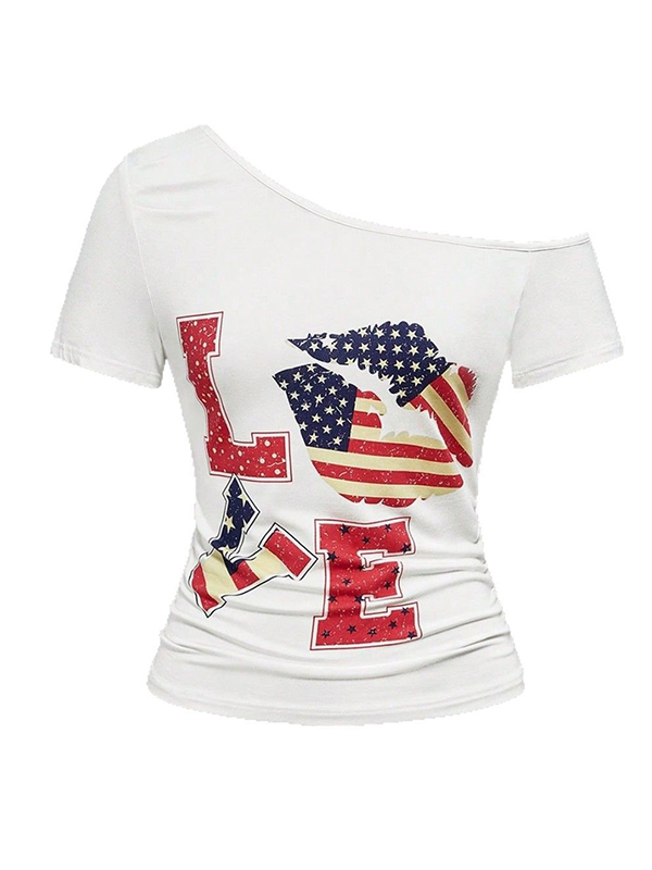 Camiseta de manga corta con estampado digital de un solo hombro
