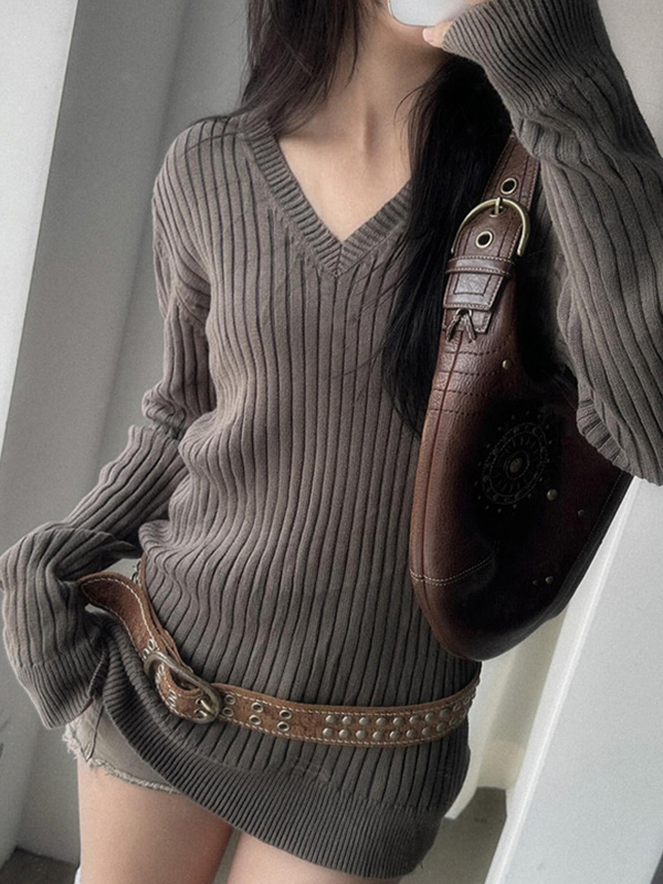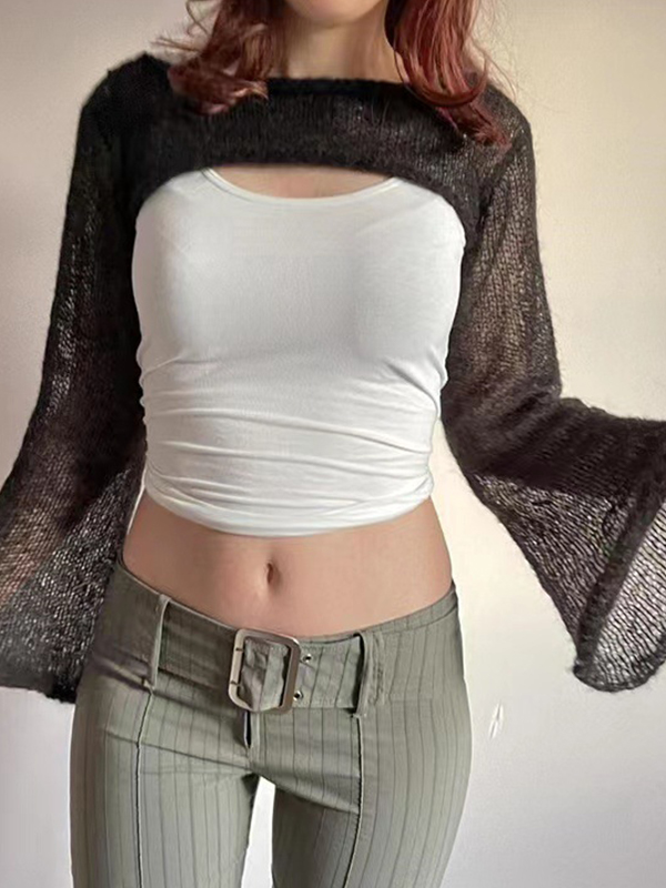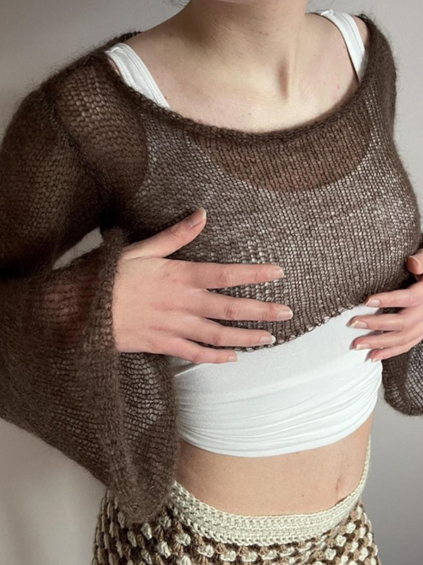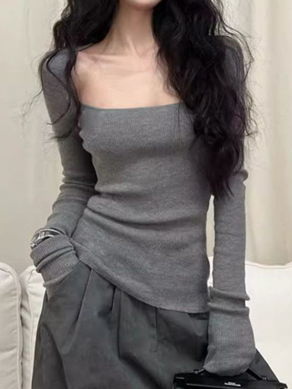 Tejido de manga larga ajustado con cuello cuadrado y estampado reversible